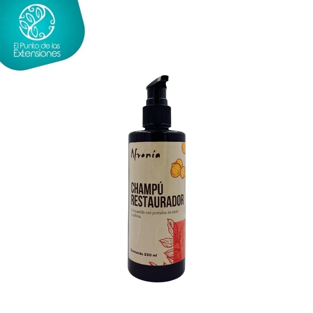 El champú restaurador de Afronía limpia de forma suave la piel cabelluda eliminando residuos, suciedad y sudor mejorando la apariencia y dejando una textura sedosa y brillante. Elaborado con ingredientes a partir de plantas, semillas, frutos y aceites naturales como: proteína de soja para nutrir y humectar el cabello restaurando su flexibilidad y brillo y cafeína para estimular el crecimiento mediante la activación de la circulación en la piel cabelluda. Fórmula sin fenoxietanol, petroquímicos, siliconas, aceites minerales, perfumes, parabenos y sal. Producto cruelty free, no testado en animales. Hecho en Colombia.