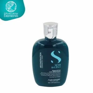 El champú reconstruction de la línea Semi Di Lino de Alfaparf Milano limpia delicadamente mientras ayuda en el proceso de reconstrucción de la fibra capilar. Ayuda a reparar, reconstruir y fortalecer día a día la estructura de la fibra capilar. Posee tecnología Semi Di Lino mejorada con 30 años de investigación en soluciones profesionales para todo tipo de cabello proporcionando brillo, protección y tratamiento y tecnología Urban Defense Pro el cual actúa como un escudo anticontaminación al tener activo biotecnológico compuesto por macromoléculas de azúcar obtenido mediante un proceso natural de fermentación y no de síntesis. La línea reconstruction damaged hair posee tecnología Shine Fix Complex que proporciona 24 horas de brillo desde la raíz hasta las puntas debido a extractos de semillas de lino, tecnología Color Fix Complex con filtro UVA y UVB y antioxidantes para proteger y prolongar la belleza del color incluso después de 9 lavados, el reflejo permanece intenso y brillante hasta en un 91% y Midollo Di Bamboo + Cortex Repair con acción reparadora debido a combinación de activos naturales ricos en silicio. Éxito basado en test de laboratorio realizados en cabellos decolorados, sometidos a ciclos de exposición de contaminación ambiental. Creado y formulado en Italia y fabricado en Brasil.