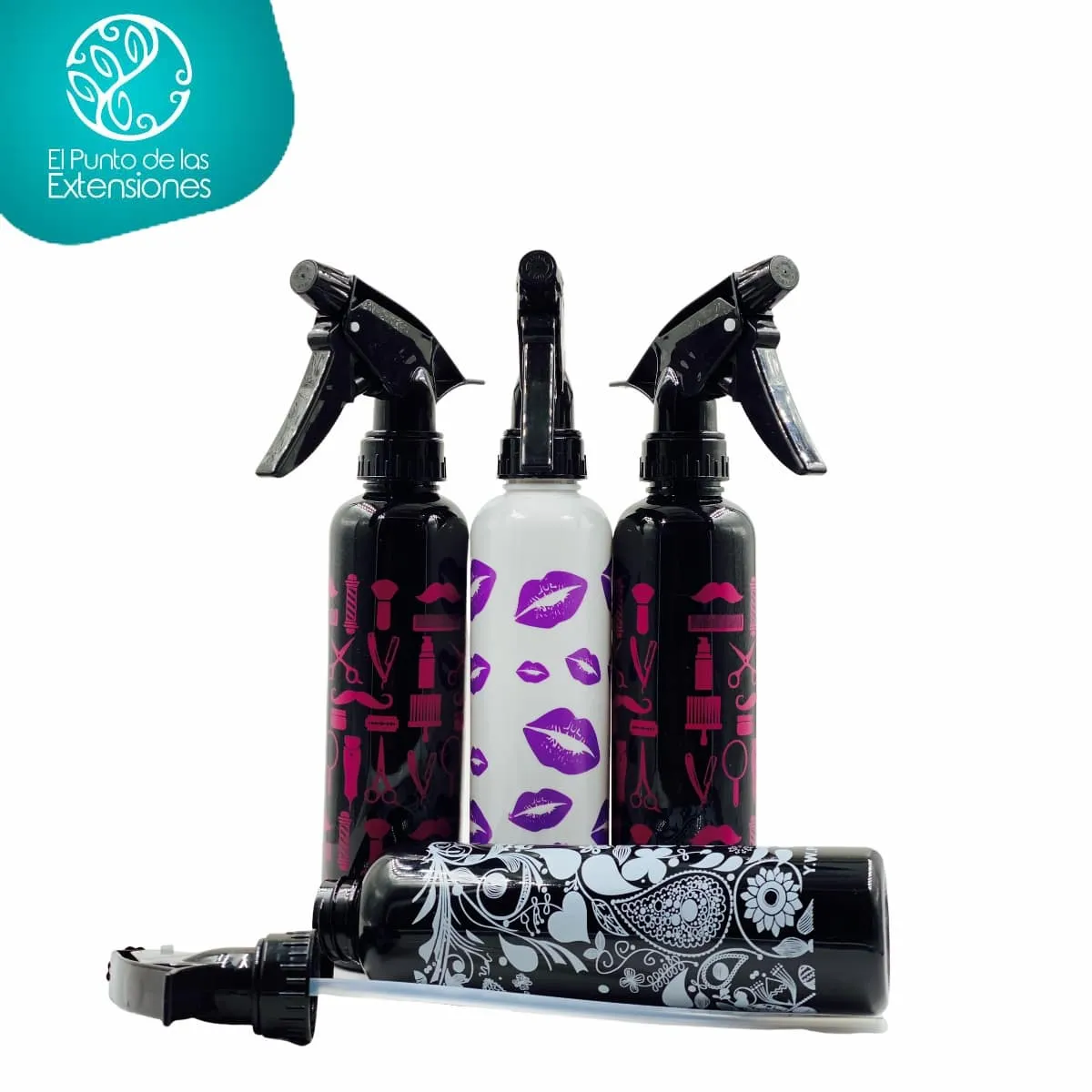 Botella plástica con boquilla de pasta dura y tubo interior en silicona en presentación pulverizador o atomizador, permite producir una fina aspersión de un líquido mediante una bomba o manija  manual. Para su funcionamiento utiliza un mecanismo de bombeo recíproco. Posee boquilla graduable para regular el flujo de partículas liberadas. Ideal para humedecer rápidamente el cabello en dosis controladas y mezclar productos para tratamientos o humectaciones rápidas. Capacidad de almacenamiento 9.5oz