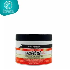 La mantequilla hidratante de Aunt Jackie’s proporciona sellado e hidratación duradera a cabellos crónicamente secos con puntas débiles y dañadas. Mantiene la humedad en cabellos en ondas, rizos y bobinas naturales. Protege cabellos tipo 3 y 4 durante tejidos, trenzas y pelucas. Elaborado con ingredientes naturales como linaza para hidratar y reparar gracias a su contenido de omega 3, manteca de karité para hidratar profundamente, aceite de aguacate para hidratar cabellos secos, aceite de ricino para nutrir profundamente y promover el crecimiento y miel para ayudar en el crecimiento fuerte y menos quebradizo del cabello, aporta brillo y nutrición. Su fórmula sin sulfatos, parabenos, petrolatos ni aceites minerales protegen el cabello de futuros daños. Producto cruelty free, no testado en animales.