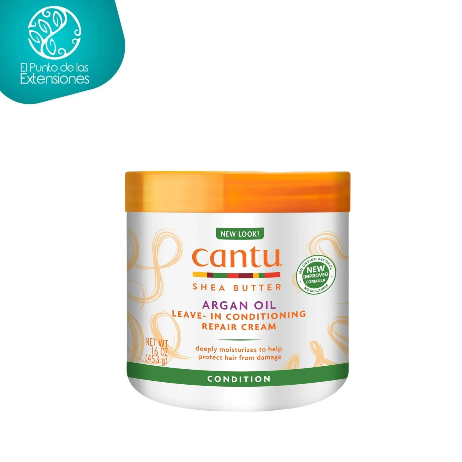 La crema reparadora leave-in de Cantu acondiciona actuando profundamente para reparar y proteger el cabello de daños causados por peinado diario, coloraciones o decoloraciones o sometidos a procesos con herramientas de calor como alisados y permanentes. Elaborado con aceite de argán para reparar el daño y prevenir el envejecimiento prematuro al ser rico en ácidos grasos y vitamina E. Su fórmula sin parabenos, sulfatos ni aceites minerales protegen el cabello de futuros daños. Producto cruelty free, no testado en animales.