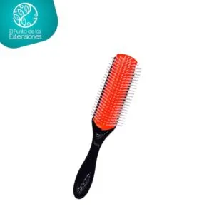 Cepillo desenredante y definidor para todo tipo de cabellos texturizados. Sus 9 cerdas desmontables permiten adaptarse a todo tipo de cabellos gruesos o rizados, se desliza fácilmente sin engancharse. Posee mango firme y antideslizante para mayor control y manejo y base de goma para ayudar en la definición del rizo. Minimiza la rotura de la hebra. Fabricado en material a prueba de agua.