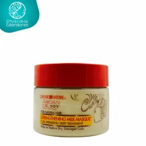 La mascarilla de tratamiento intensivo de Creme of Nature repara cabellos secos y quebradizos restaurando la hidratación con su mezcla de nutrientes reparadores. Fortalece la hebra reteniendo la humedad de la misma para prevenir futuros daños. Ayuda a suavizar y proporcionar brillo gracias a la tecnología Exotic Shine. Elaborado con ingredientes naturales como aceite de argan de Marruecos para reparar el daño y prevenir el envejecimiento prematuro al ser rico en ácidos grasos y vitamina E. Su fórmula sin sulfatos, vaselina ni aceites minerales protegen el cabello de futuros daños. Hecho en USA.