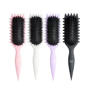 Cepillo para el cabello texturizado. Permite perfeccionar el acabado separando, moldeando y definiendo las ondas, rizos y crespos con sus laterales, mientras que sus cerdas de nylon distribuyen tus productos favoritos uniformemente. Cepillo con mango ergonómico con cerdas resistentes pero flexibles intercaladas para garantizar un cepillado sin esfuerzo ni rotura de la hebra. Fabricado en material a prueba de agua. NO resistente al calor.
