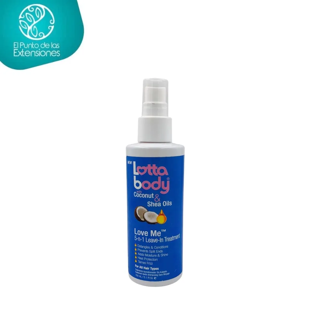 El spray 5 en 1 LottaBody ama Me acondiciona el cabello ayudándolo a desenredar, lo protege del calor y agresiones externas, añade hidratación y brillo, previene las puntas abiertas y ayuda a controlar el frizz. Ideal para todo tipo de cabellos naturales, tinturados o alisados. Elaborado con ingredientes naturales como aceite de coco para aportar brillo y suavidad y aceite de karité para hidratar profundamente y proteger el cabello de daños causados en procesos químicos. Fórmula libre de sulfatos, aceites minerales, ftalatos, parafinas, petrolatos ni formaldehído. Hecho en USA.