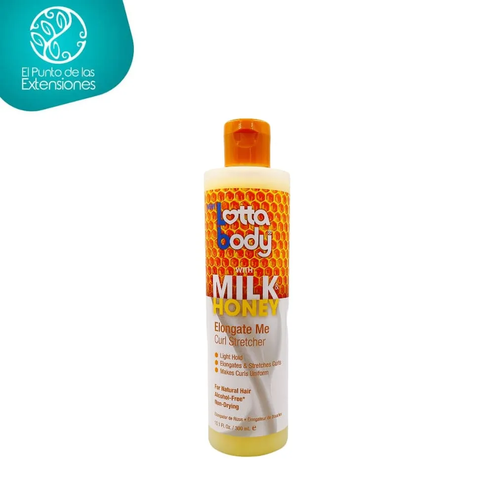 El alargador de rizos elonga Me de la línea leche & miel de LottaBody permite evitar el encogimiento en cabellos rizados y crespos. Afloja temporalmente la textura agregando manejabilidad a los estilos. Puede ser utilizado con secado al aire o herramienta de calor optimizando el tiempo del mismo. Elaborado con ingredientes naturales como proteína de leche para aportar nutrición, suavidad y fuerza en la hebra y para para ayudar en el crecimiento fuerte y menos quebradizo del cabello, aporta brillo y nutrición. Fórmula libre de alcohol, sulfatos, aceites minerales, parafinas, petrolatos. Hecho en USA.