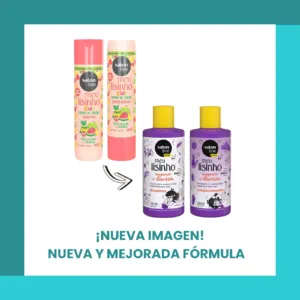 El kit champú y acondicionador de la línea Meu Lisinho Kids de SalonLine hidrata y cuida el cabello de niños +3 años. Ideal para niñas o niños de cabello liso. Hipoalergénico y dermatológicamente testado. Elaborado con frutos rojos (arándanos, frambuesas, fresas, fresones, cerezas y moras) para mantener la textura y el color al ser rico en antioxidantes, frutos amarillos para reparar y regenerar y agua de coco para proveer hidratación intensa al ser rico en nutrientes, minerales y antioxidantes. No contiene sal ni parabenos. Producto vegano. Producto cruelty free, no testado en animales. Hecho en Brasil.