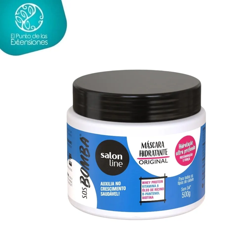 La mascarilla bomba original de la línea S.O.S Bomba de SalonLine proporciona hidratación intensa a cabellos ondulados, rizados, crespos y afro. Permitiendo restaurar y fortalecer la hebra para evitar la rotura. Elaborado con proteína de suero para restaurar la fibra capilar dañada al ser rico en aminoácidos esenciales, vitamina A para fortalecer la hebra y mejorar la textura de la fibra capilar, aceite de ricino para nutrir profundamente y promover el crecimiento, d-pantenol para mantener la hidratación y biotina para cerrar las puntas abiertas, prevenir la caída y fortalecer el cabello. Producto vegano. Producto cruelty free, no testado en animales.